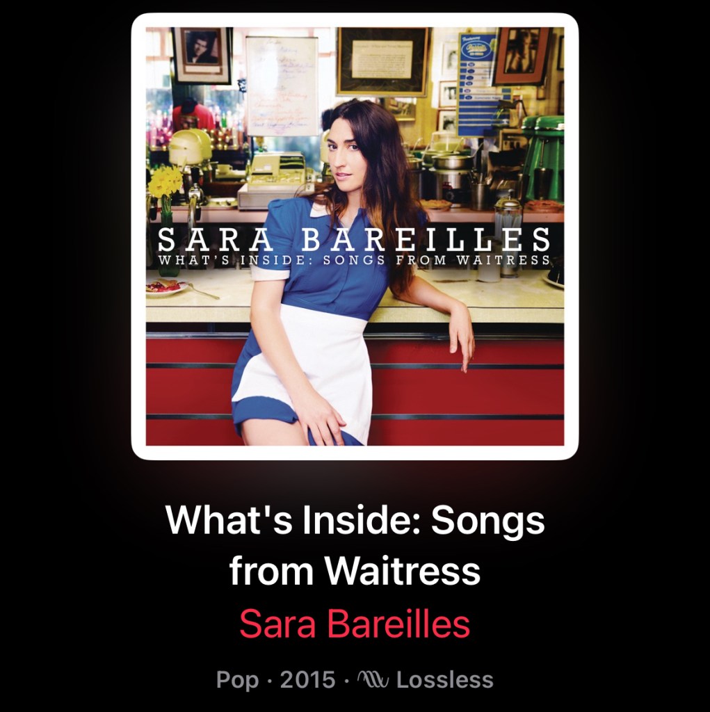 I’ve become a big Sara Bareilles fan over the last couple of years and it was THIS MOMENT that I learned that she wrote the music for the WAITRESS musical. I’ve never heard the cast recording before, so this is my first dip into that pool. Looking forward to it!