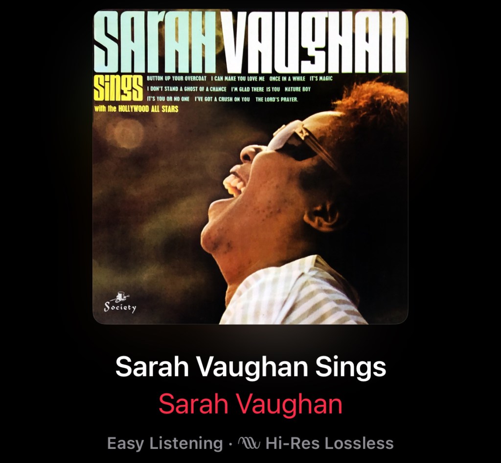 Sarah Vaughan’s status as one of the great jazz singers has never set well with me. I mean, she doesn’t suck. She’s just never hit me in the cockles like I feel she should with her reputation. I can hear you. You’re screaming, “But she had perfect pitch!” Yeah, so? Technical talent is not the same as passion. And she doesn’t fill me with any passion.
